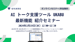 【2/19(水)12:00~12:30】AI トーク支援ツール「UKABU」最新機能 紹介セミナー(オンライン/参加無料)